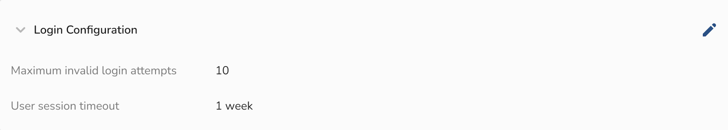 Administrators can specify the maximum times that users can attempt to login and specify the length of time a logged-in user can stay logged in without their session timing out.