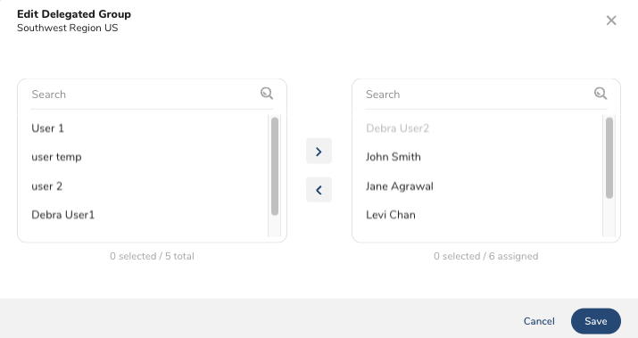 - Using the edit pencil, you can edit the users in the Delegated Group.