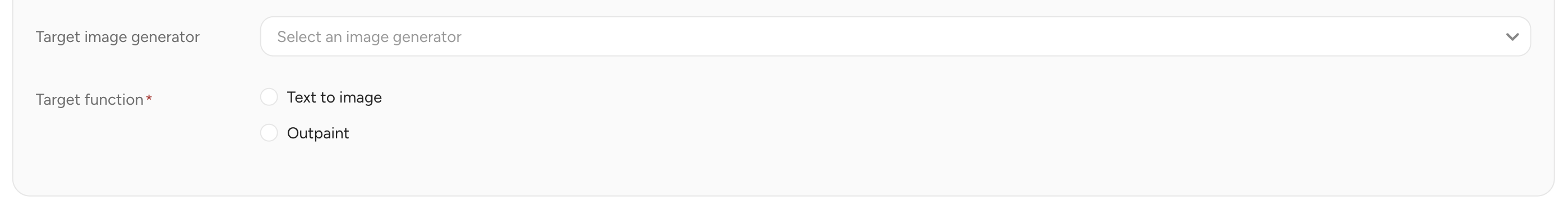 - Target image Generator : An image generator to use. Select an image generator from existing image generater instances
