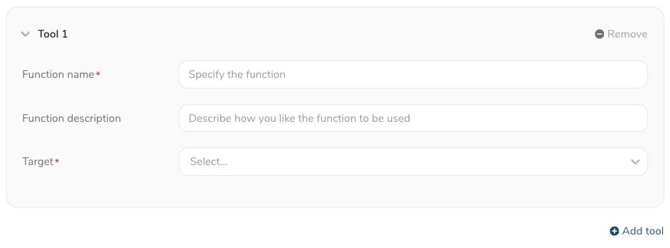 | Function Name | Enter a name for the function. The agent refers to this name. |
