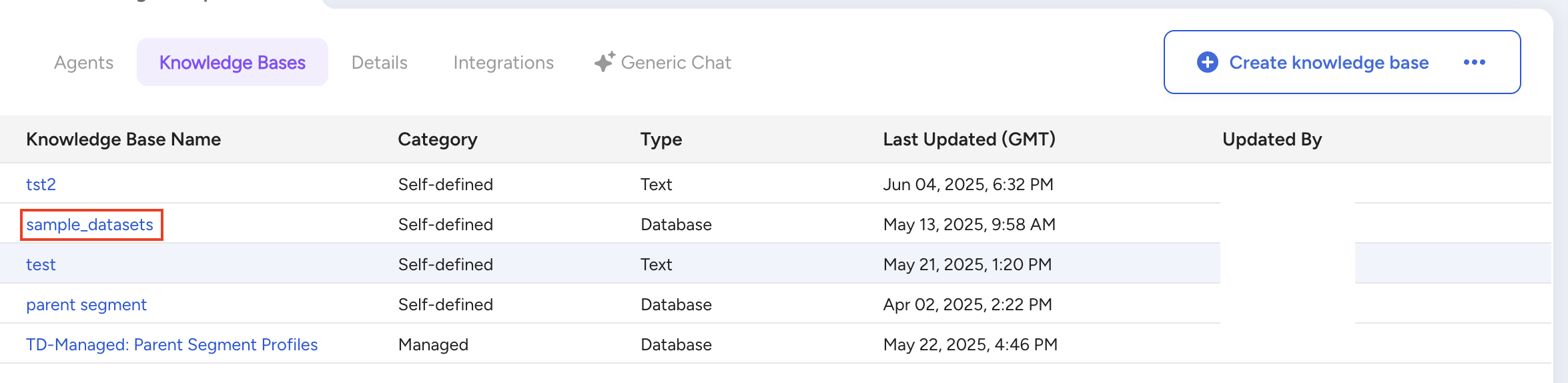 - Move to Knowledge Bases Tab.