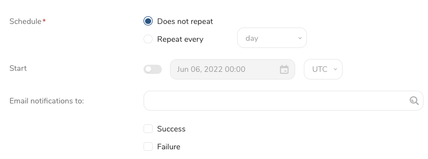 If you create a schedule using a future date, the schedule will always start at midnight.