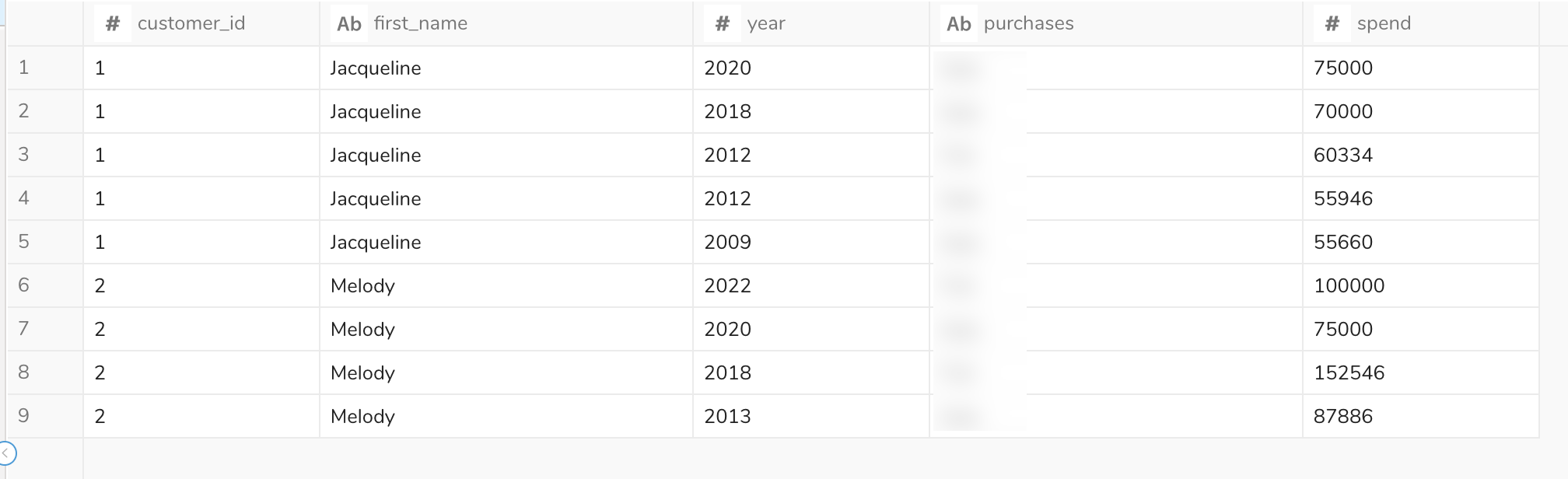 Consider the following source table sample with attribute and behavior configurations as follows: