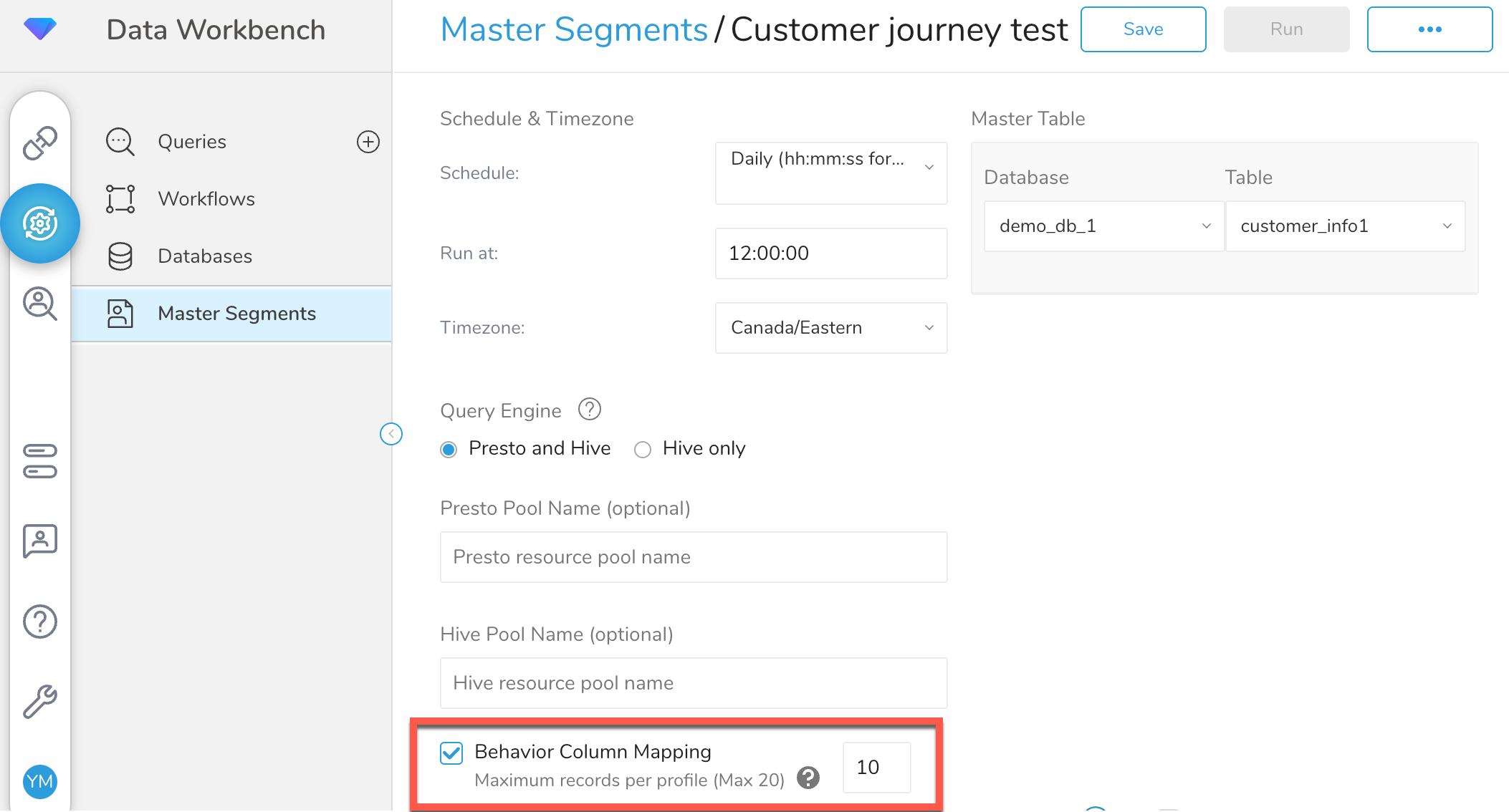 When you use match logic ANY and activate attributes and behaviors, for qualifying profiles with no records meeting the rules of the activated behavior table, behavior data value would be marked as NULL. For details, see Match Logic ANY Example with NULL value