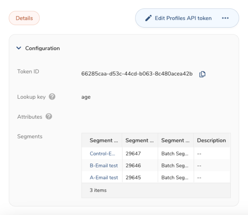 - Add segments to your Profiles API Token.