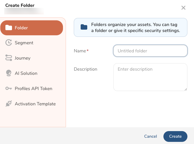 - Enter a name for the folder and optionally provide a description.