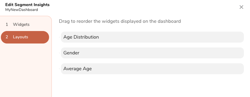 You can configure the segment insights dashboard—adding up to 10 specific widgets. By default, your first dashboard is assigned as the default dashboard until you set another one to override it.