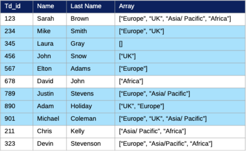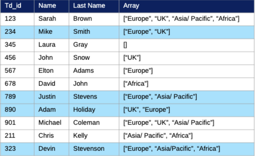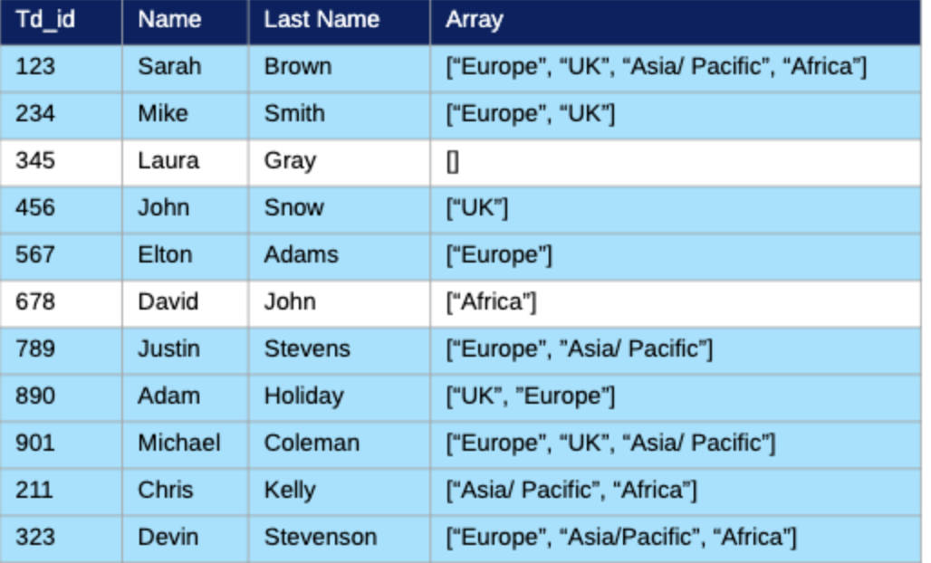 The array can have values not listed (e.g. Africa