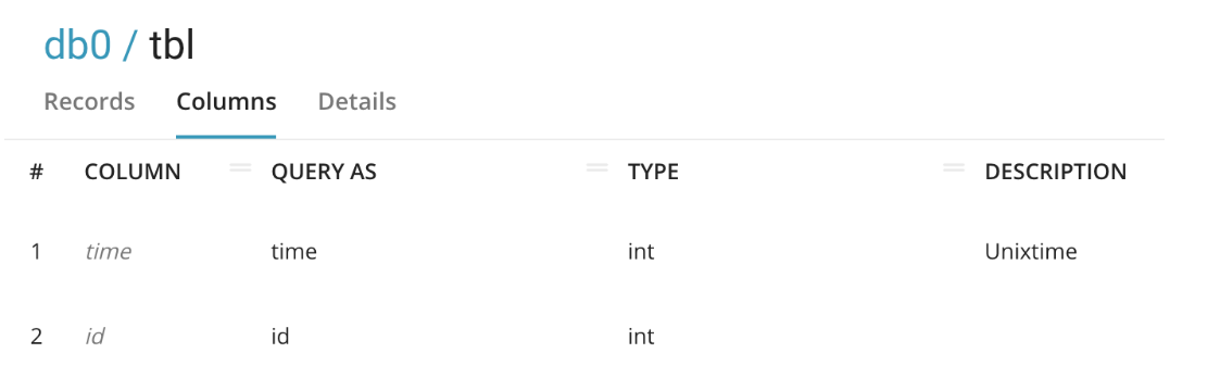 Table Definition: