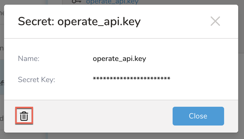 7. Select the trash bin to delete the secret.