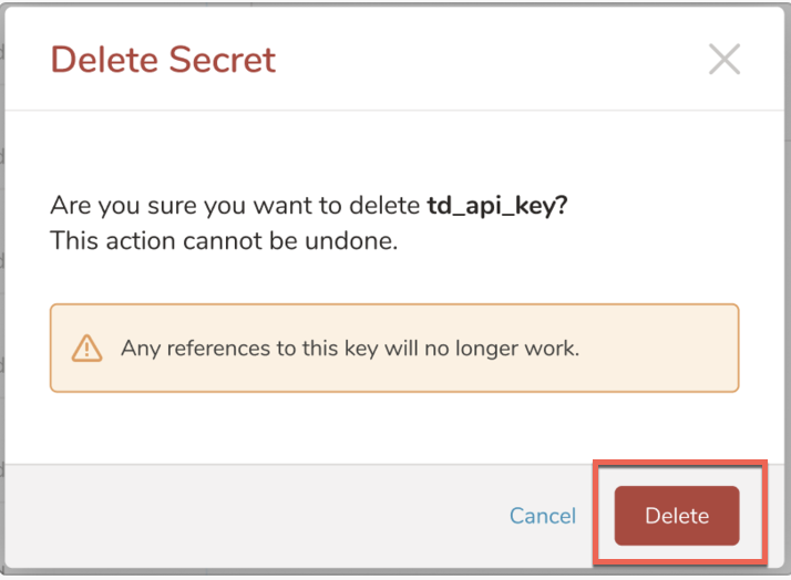 Treasure Data allows you to delete secrets through TD Console.