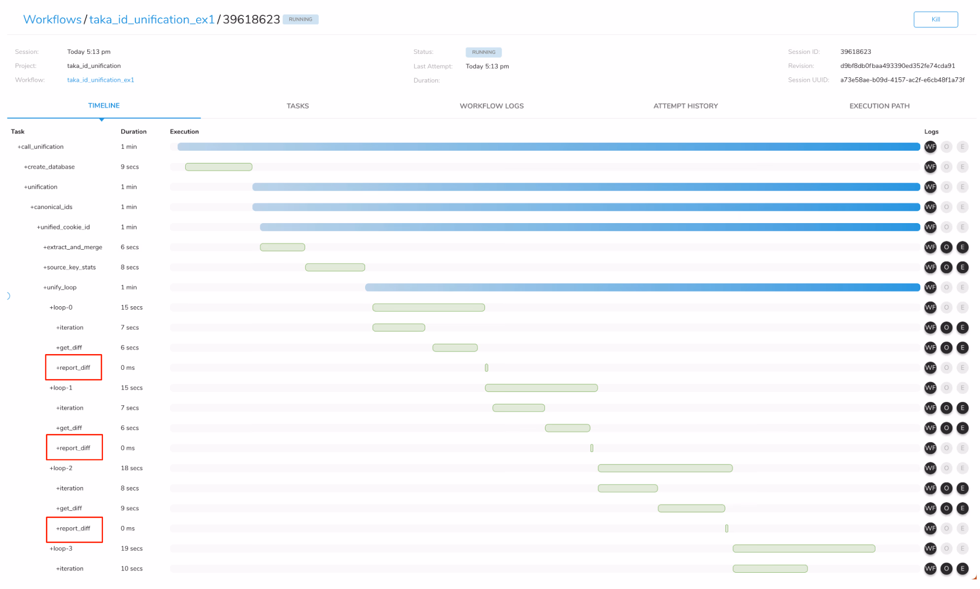 Examine the workflow logs for the report_diff section. If you find a loop iteration where Updated number of records: 0, the algorithm has converged.