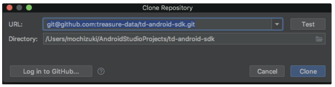 Type git@github.com:treasure-data/td-android-sdk.git in the URL field.