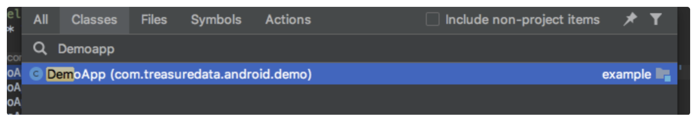 From Navigate > Class menu, search for any files. For example, search DemoApp.