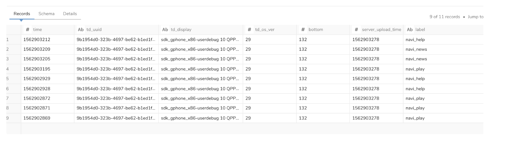 You can see the records on the TD Console in minutes. For example: