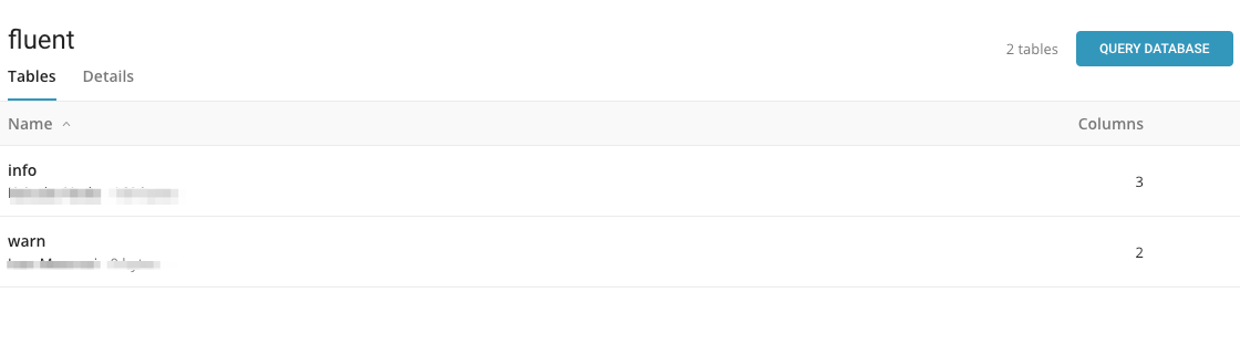 td-agent logs sent to Treasure Data are stored in a database named fluent on your instance. Within the fluent database, a series of tables are created corresponding to the different log levels used by the fluentd logger.