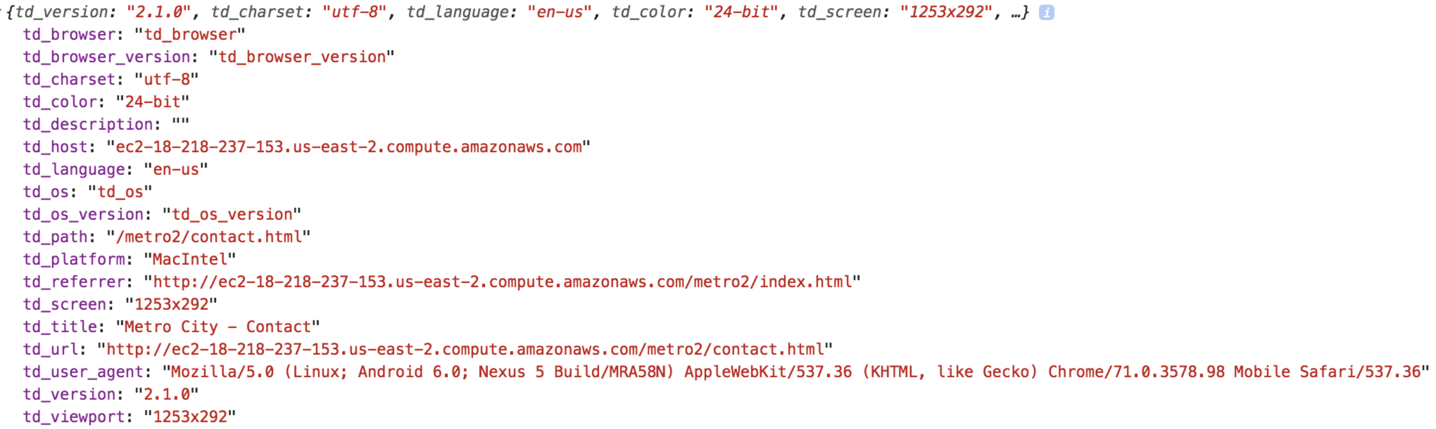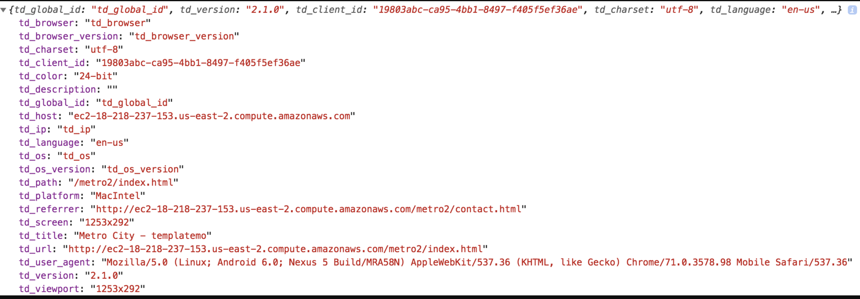 When a user accesses your web page for the first time, the following info is included in the stored cookie by default (td_ip, td_client_id and td_global_id).