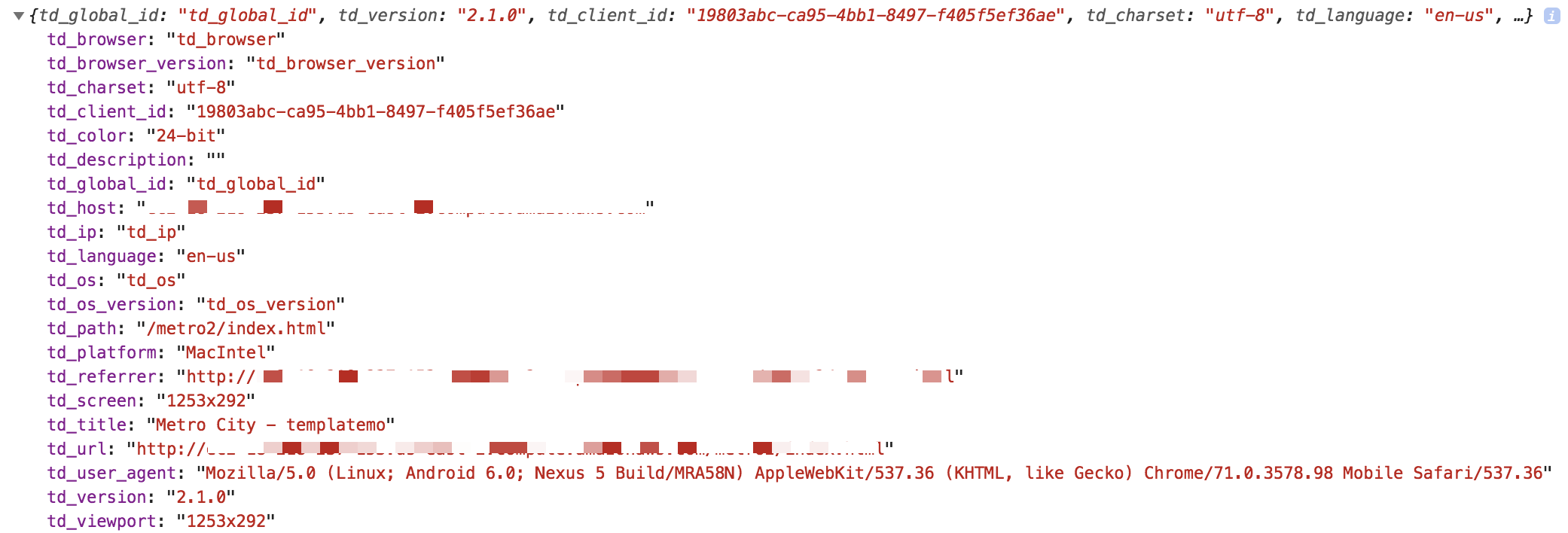 If the user selects Decline on the cookie consent prompt, the following fields (td_ip, td_client_id and td_global_id) are not sent on any subsequent page visits by this user: