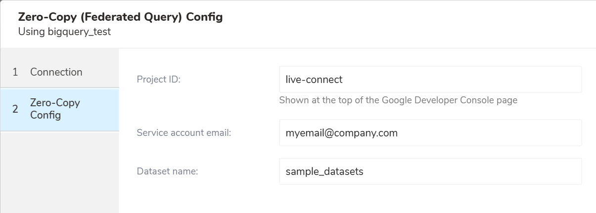 - Create a New Zero-Copy source, specifying your JSON keyfile.
