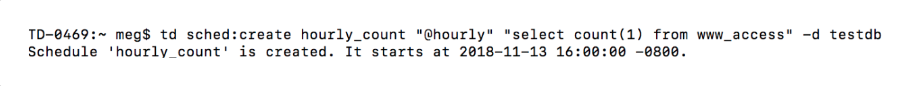 $ td sched:create non_scheduled_query "" "select count(*) from www_access" -d sample_datasets