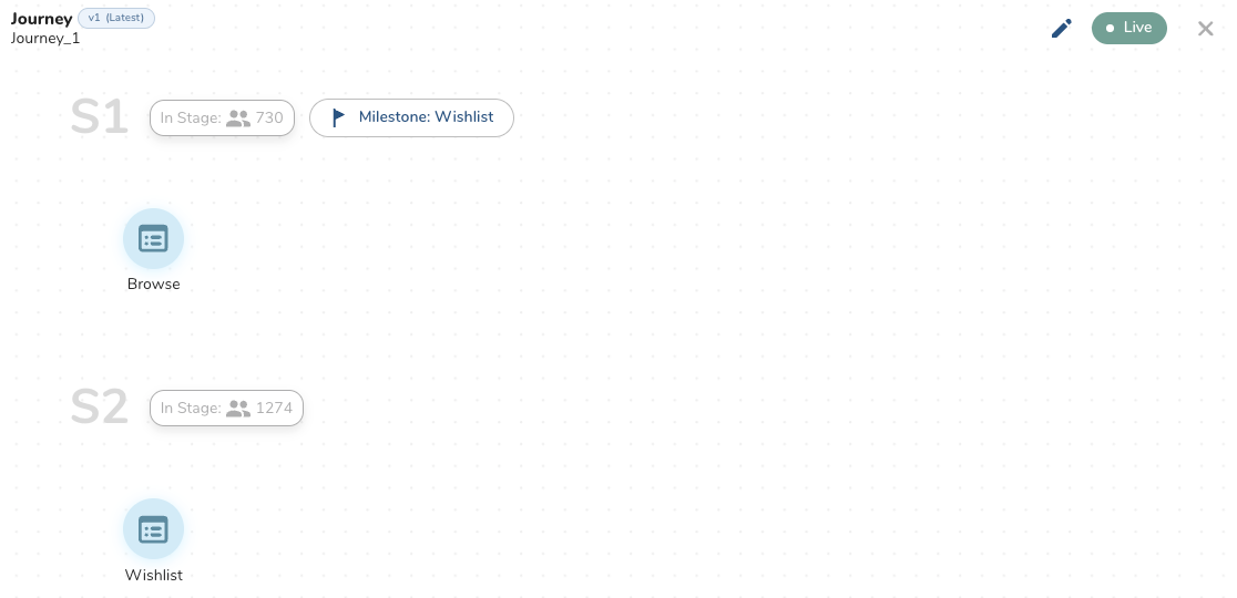 1274 profiles have entered into the S2 stage. None of the profiles from the S1 stage have progressed to S2. How are profiles in S2? The profiles entered S2 because they met the Wishlist criteria.