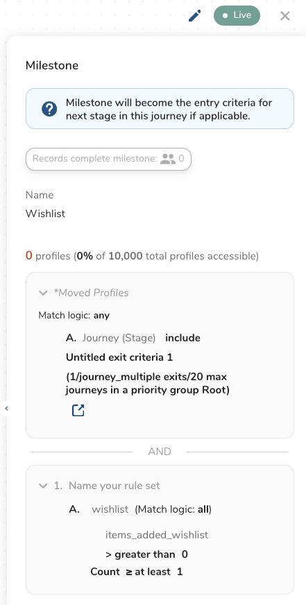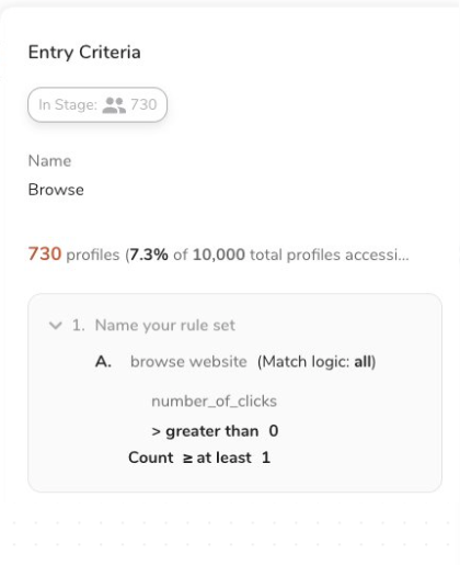 There are 10,000 profiles in the parent segment. 730 profiles have entered into the S1 stage. There are two sets of criteria that allow entry to S1.