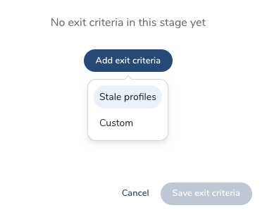- Optionally, select Add exit criteria to include additional stale profiles or custom exit criteria.