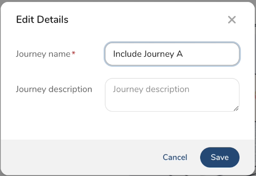 The Edit Details modal displays. On this page you can change the Journey name and Journey description.