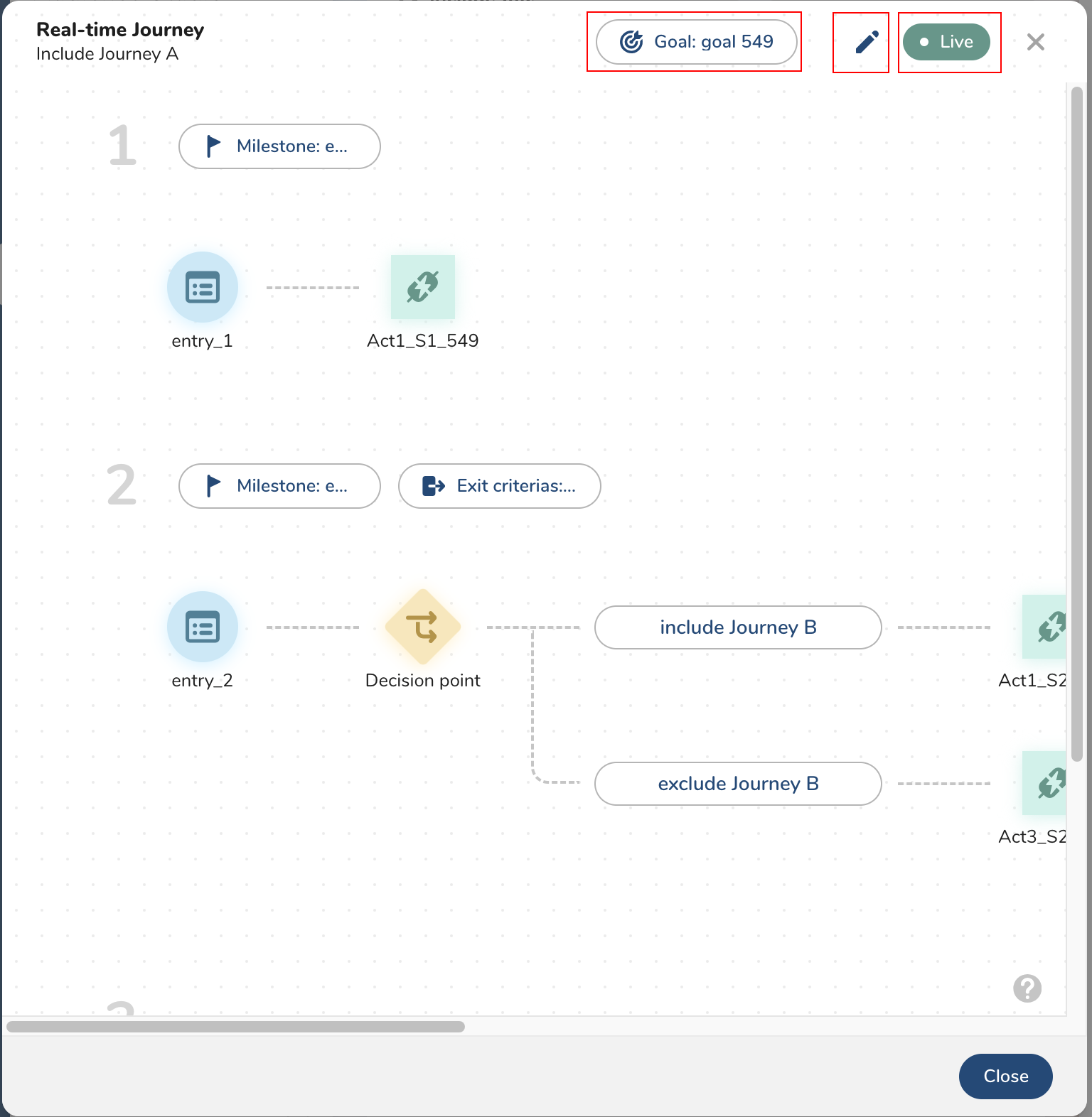 The Real-time journey page displays the duplicated journey. - Make changes to the journey by selecting the edit icon