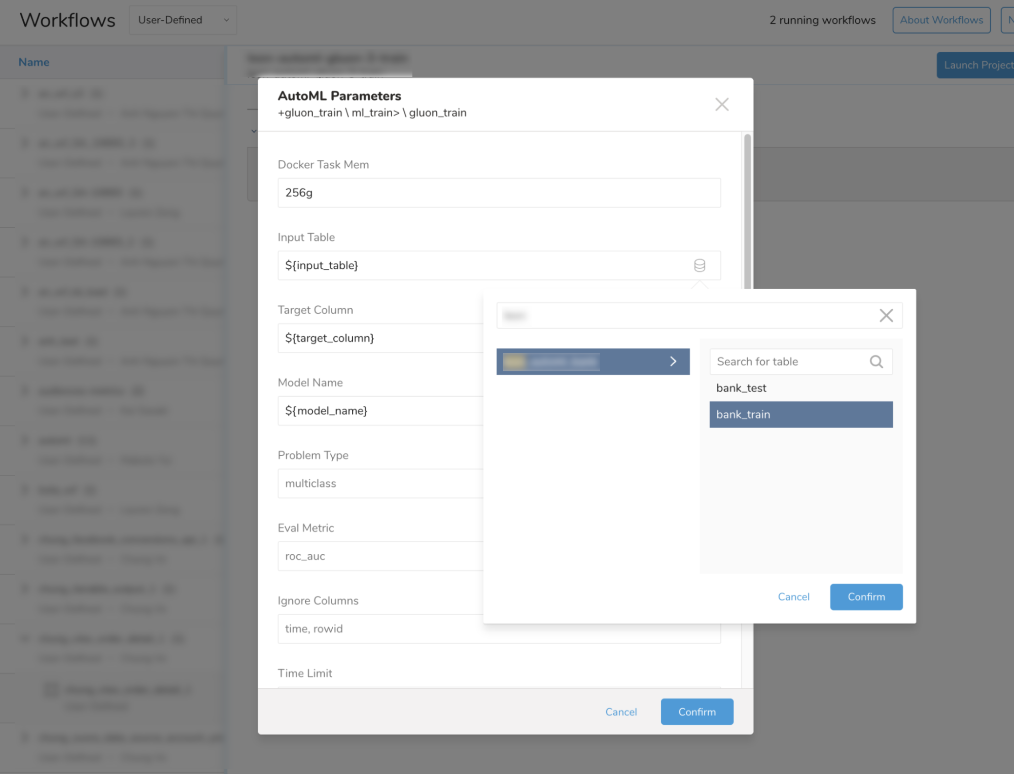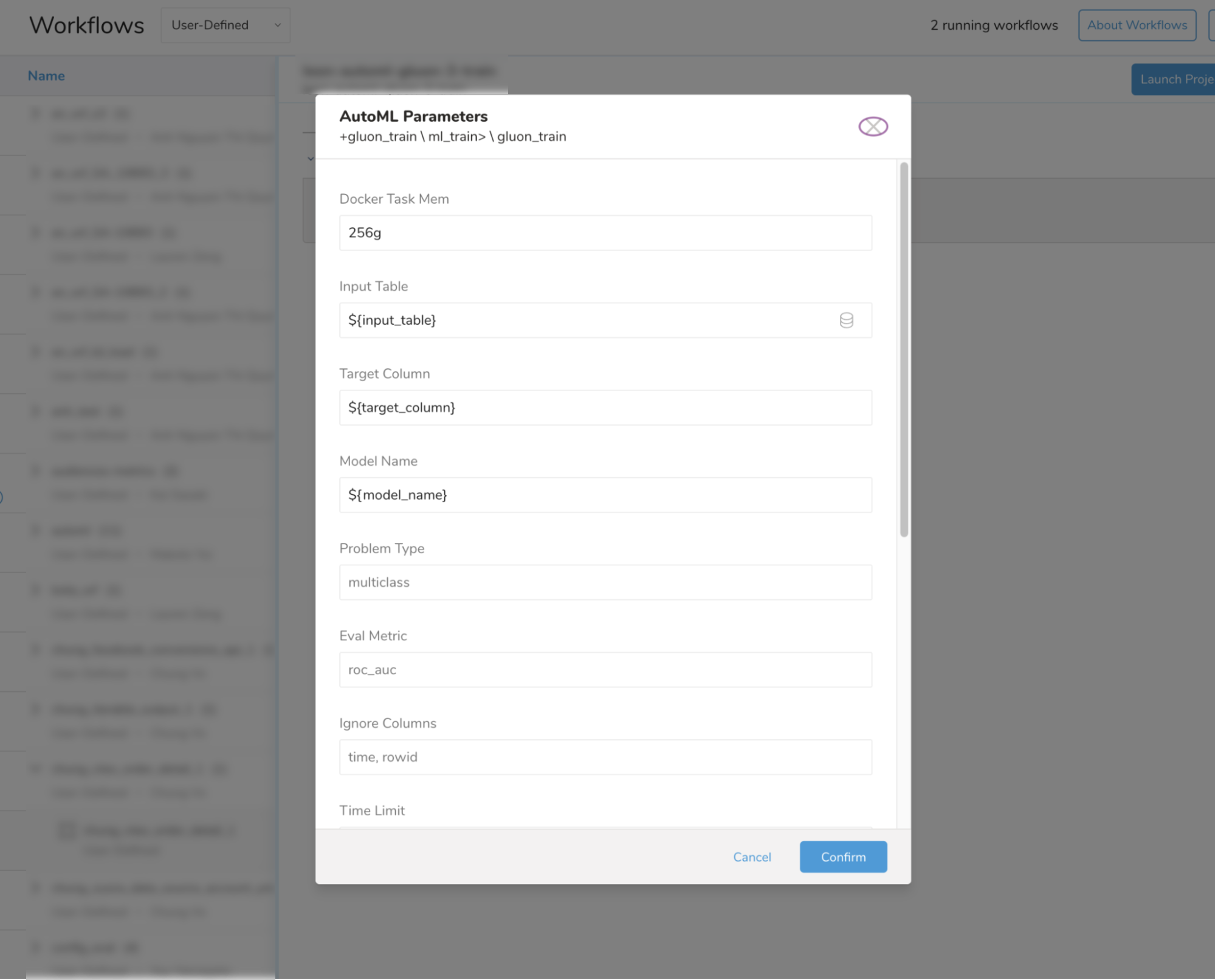 To prepare the AutoML workflow, it is necessary to provide a Master Key as a secret. This is required to enable the AutoML container to access relevant databases. You can set and edit secrets or parameters for an AutoML Workflow from the console, like a typical TD workflow.