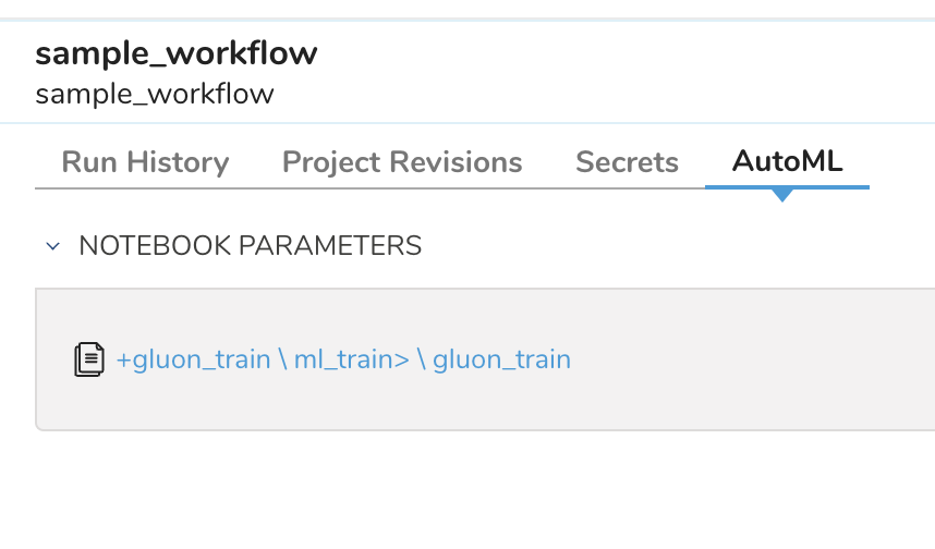 Select the AutoML tab and select the notebook listed under Notebook Parameters.