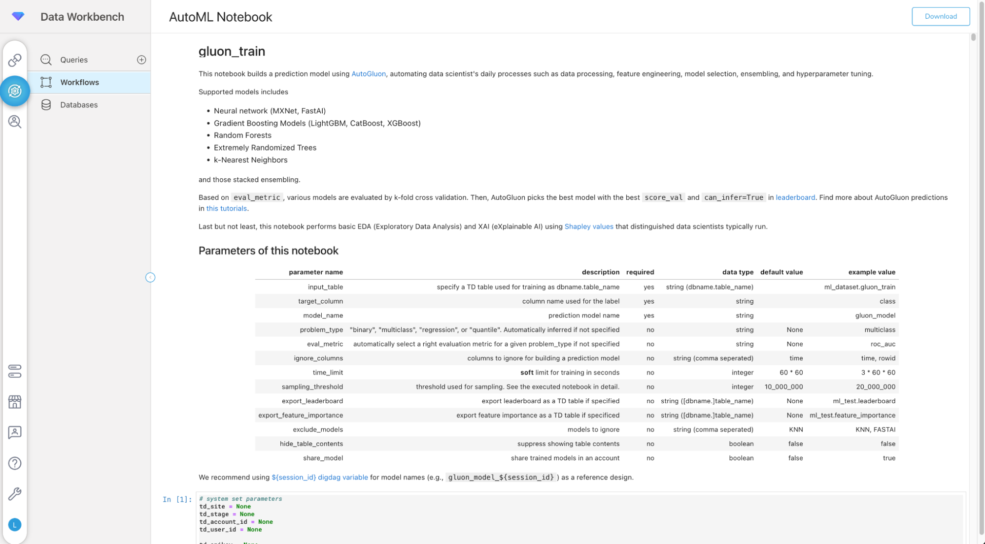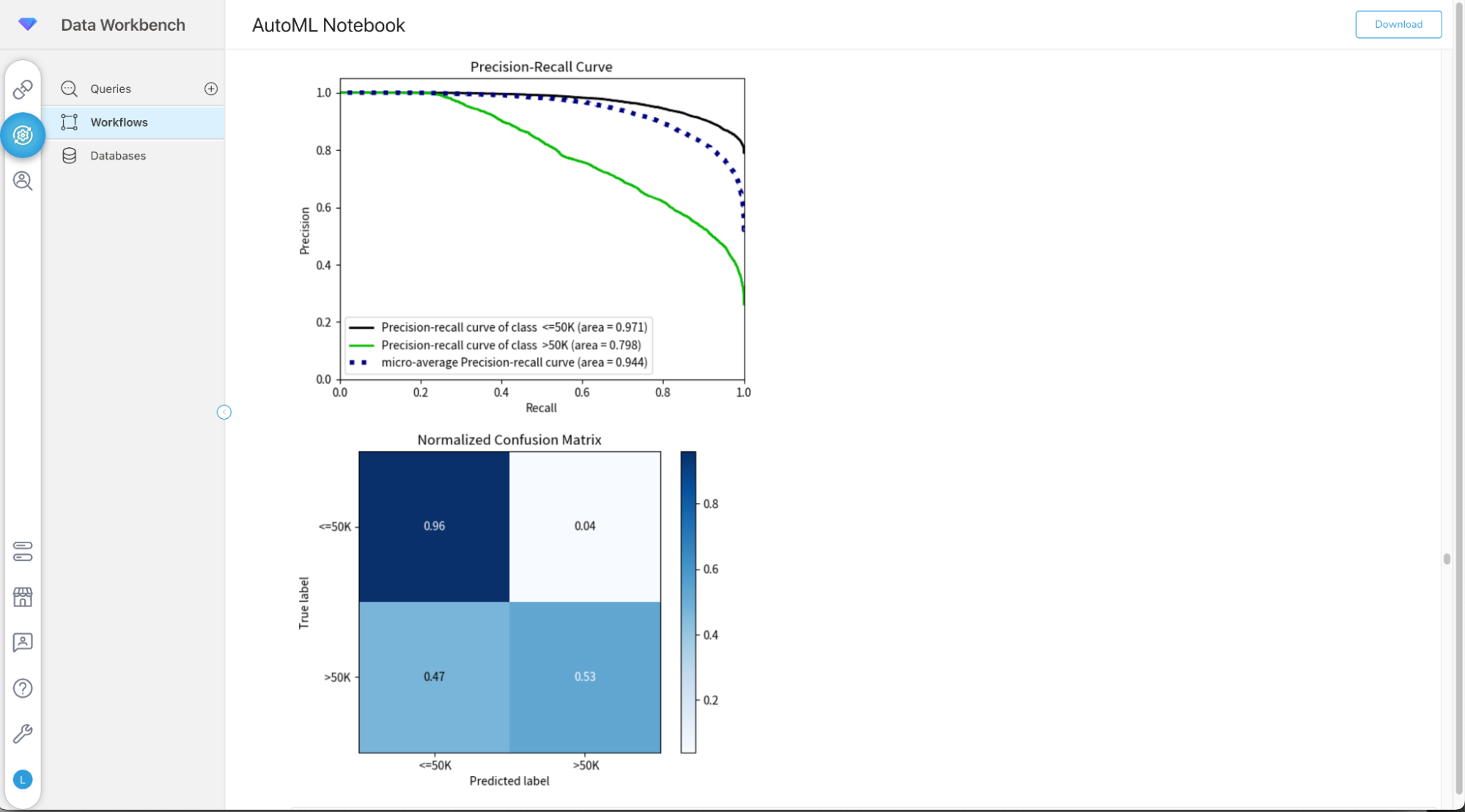 When an AutoML workflow has successfully completed, you can view the associated iPython notebook that has been generated.