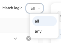 - Add additional rules (up to 26) and apply one or multiple rules using all or any match logic.