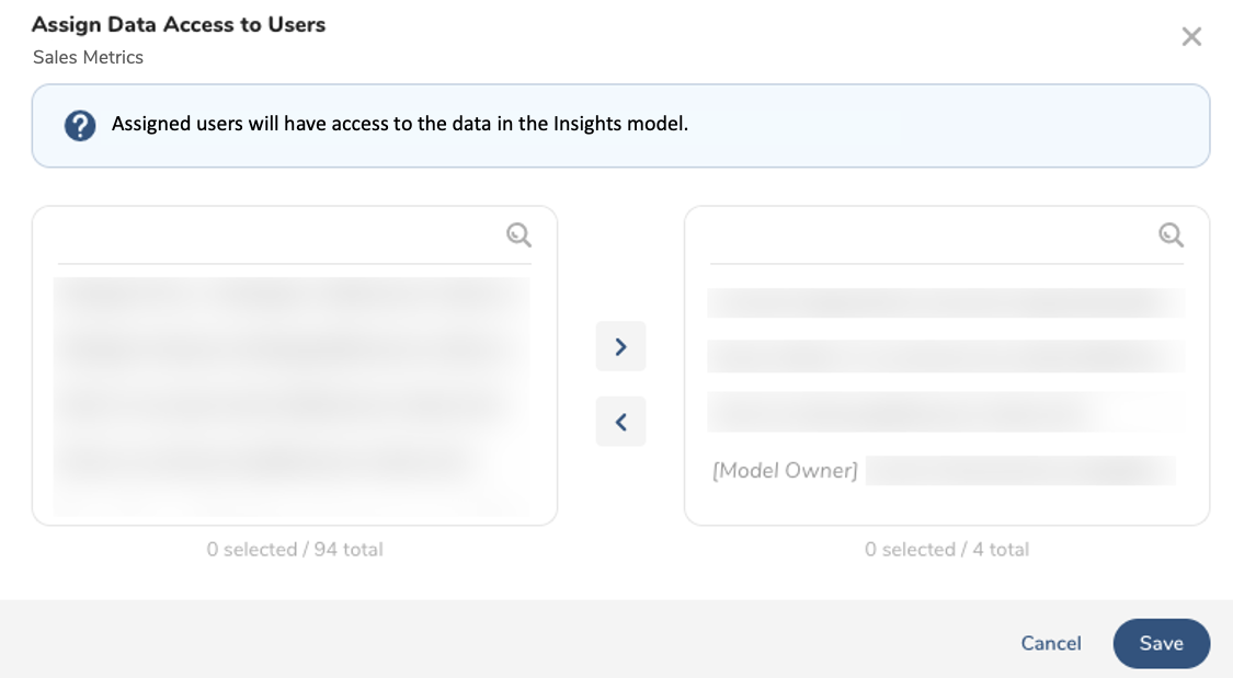 - Search for the user that created this Insights model. You must type in the user's name. You cannot search with "Model Owner".