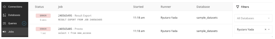 You will notice that for every query with a Result Export setup, two jobs will now be generated. As a result, you will see the following in your jobs list for queries with result export setup: