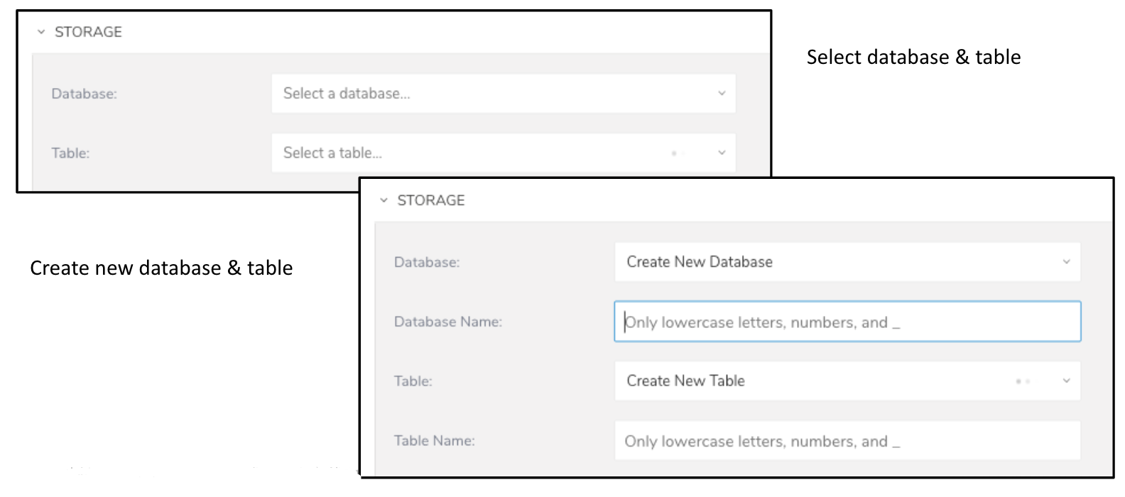 For every new data transfer, you can manually select a database and table, instead of a default database and table being selected for you. This is particularly useful when you already have a similar, existing data transfer and want the specified location for the imported data to be different.