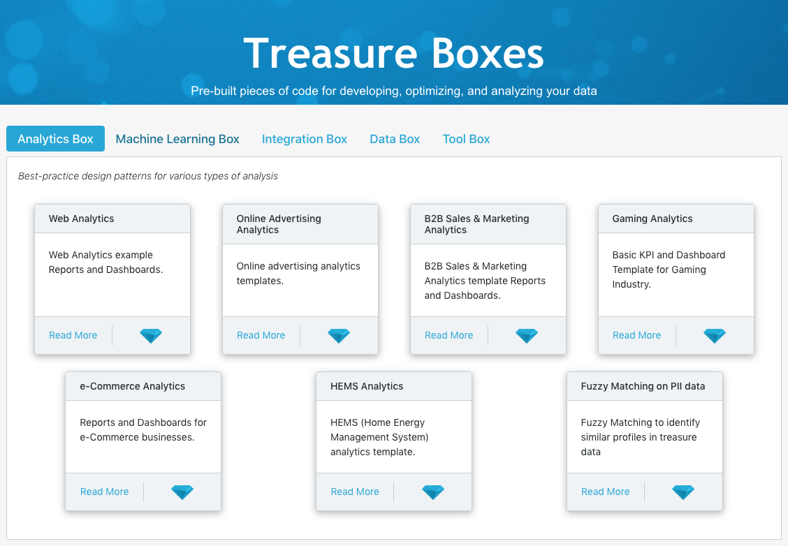 Treasure Boxes enable you to access and analyze data faster and support a profusion of customer data use cases for your entire organization. Categories of Treasure Boxes include: